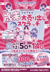 伊奈町商工会では、毎年恒例の「歳末大売り出し de スクラッチ」を今年も開催いたします。